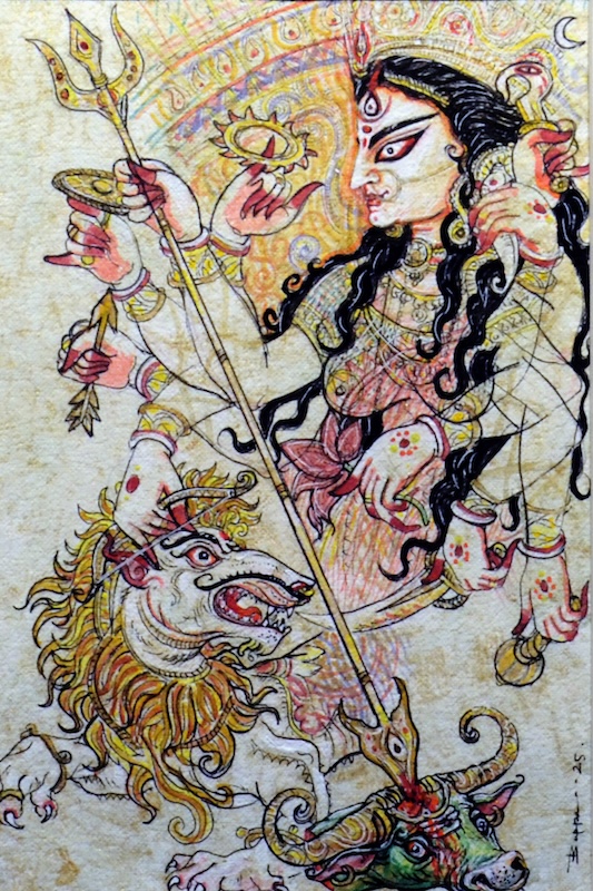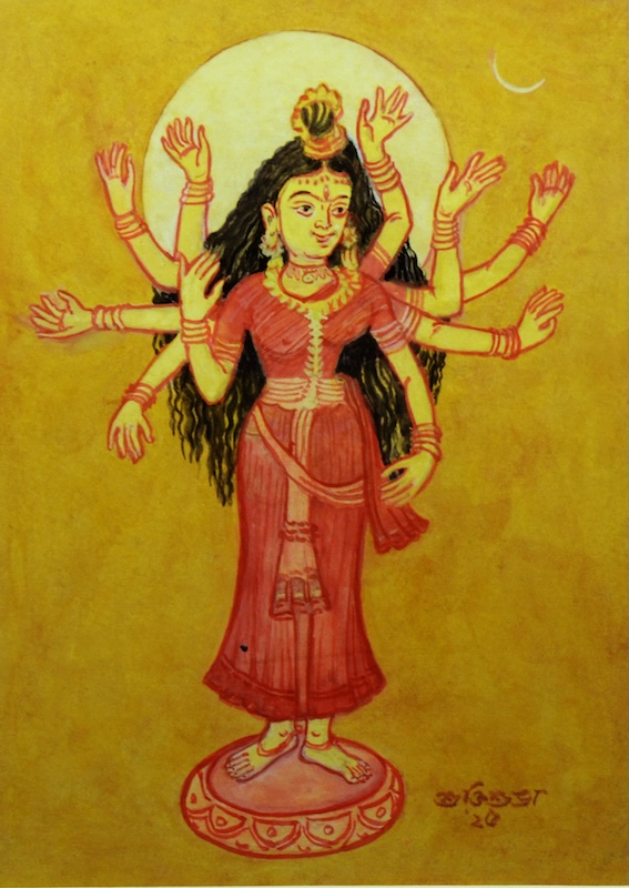 Amar Durga 2,  Sukti Subhra Pradhan,  Gouache on Paper,  11" x 8"