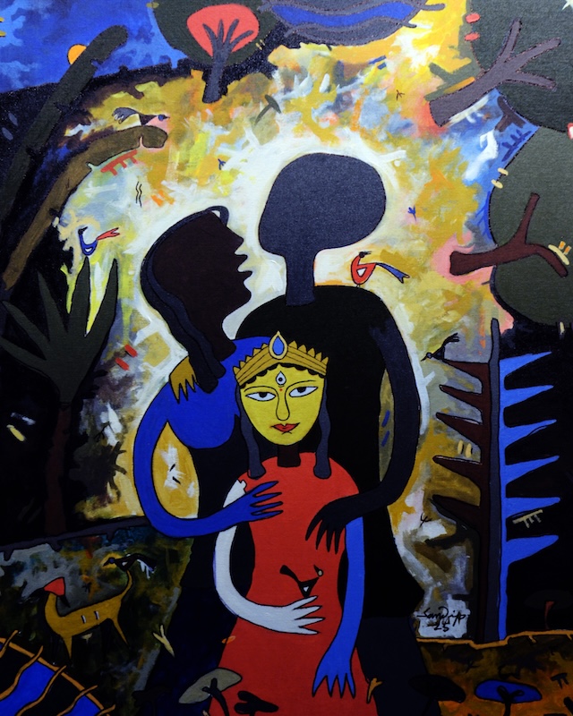 Made for each other,  Santo Sarkar,  Acrylic on Paper,  20" x 21"
