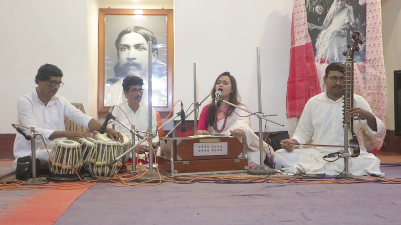 This was followed by an offering of songs by Debolina Das accompanied by Shri Chanchal Nandi on the tabla, on the Esraj by Shri Saugata Das and percussion by Shri Pritam Nandi.