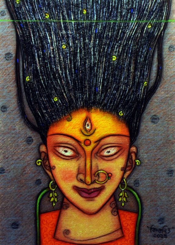 Chandika,  Arghya Dipta Kar,  Tempera on Board,  23" x 15"