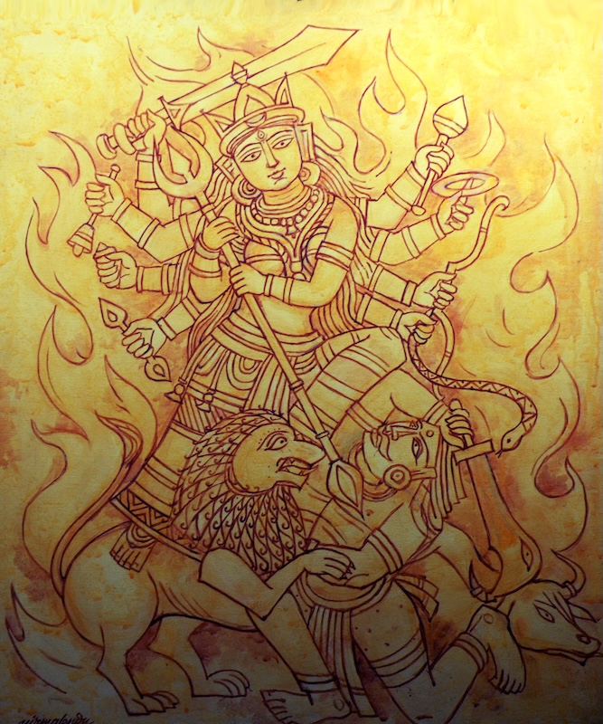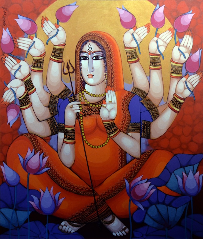 Durga,  Sekhar Roy,  Acrylic on Canvas,  42" x 36"