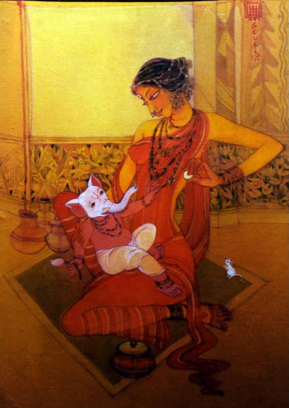 Ganesh Janani 4,  Stuti Laha,  Wash on Cloth,  18" x 13"