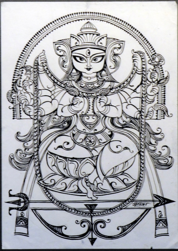 Amar Durga 2,  Sukti Subhra Pradhan,  Gouache on Paper,  11" x 8"